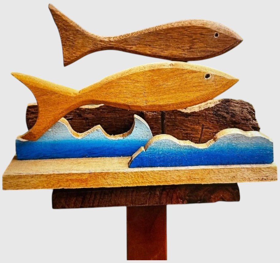 A Coffee table show piece of fish hand crafted and made with driftwood.